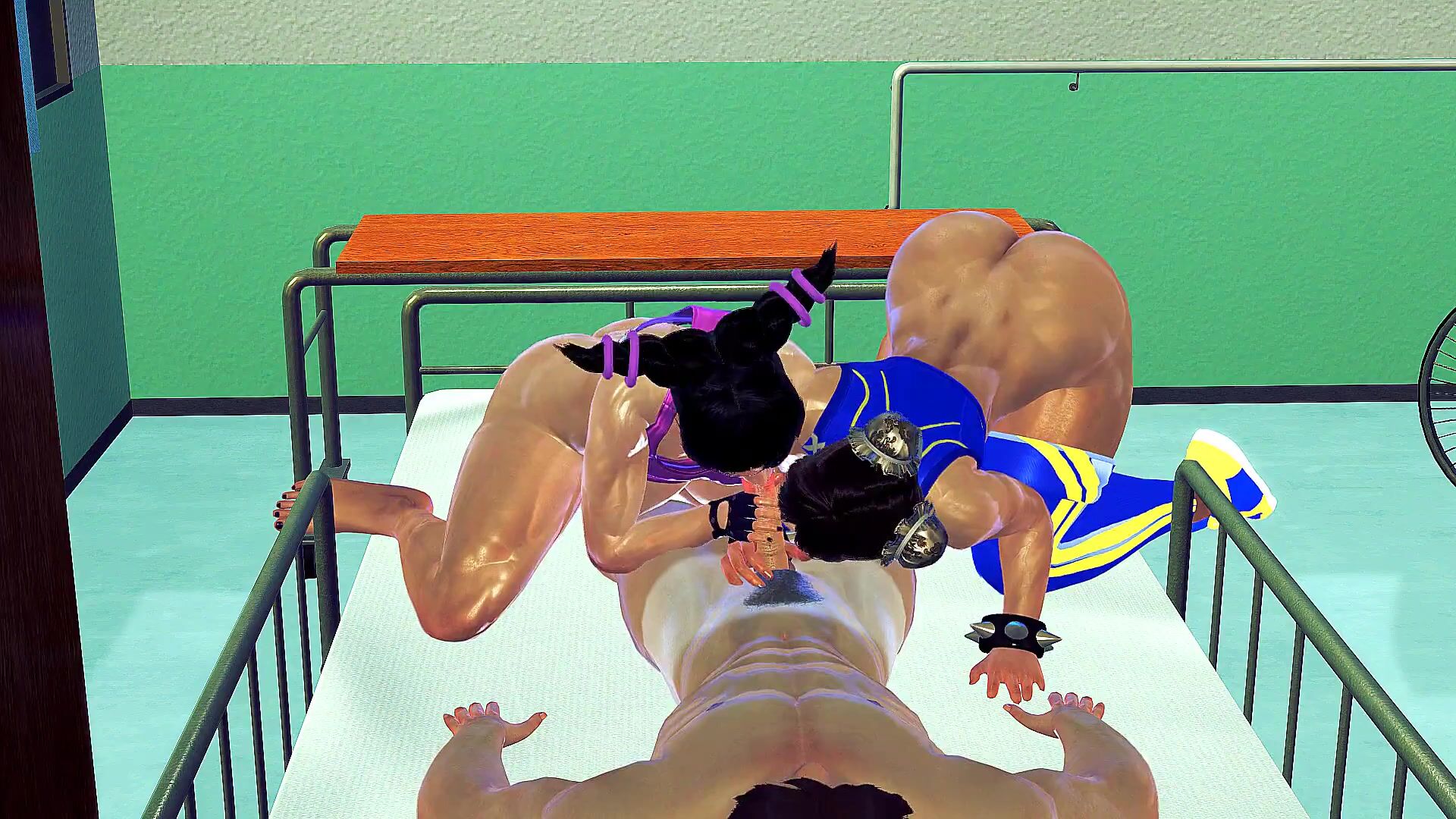 Juri Han and Chun Li double blowjob and cowgirl hentai