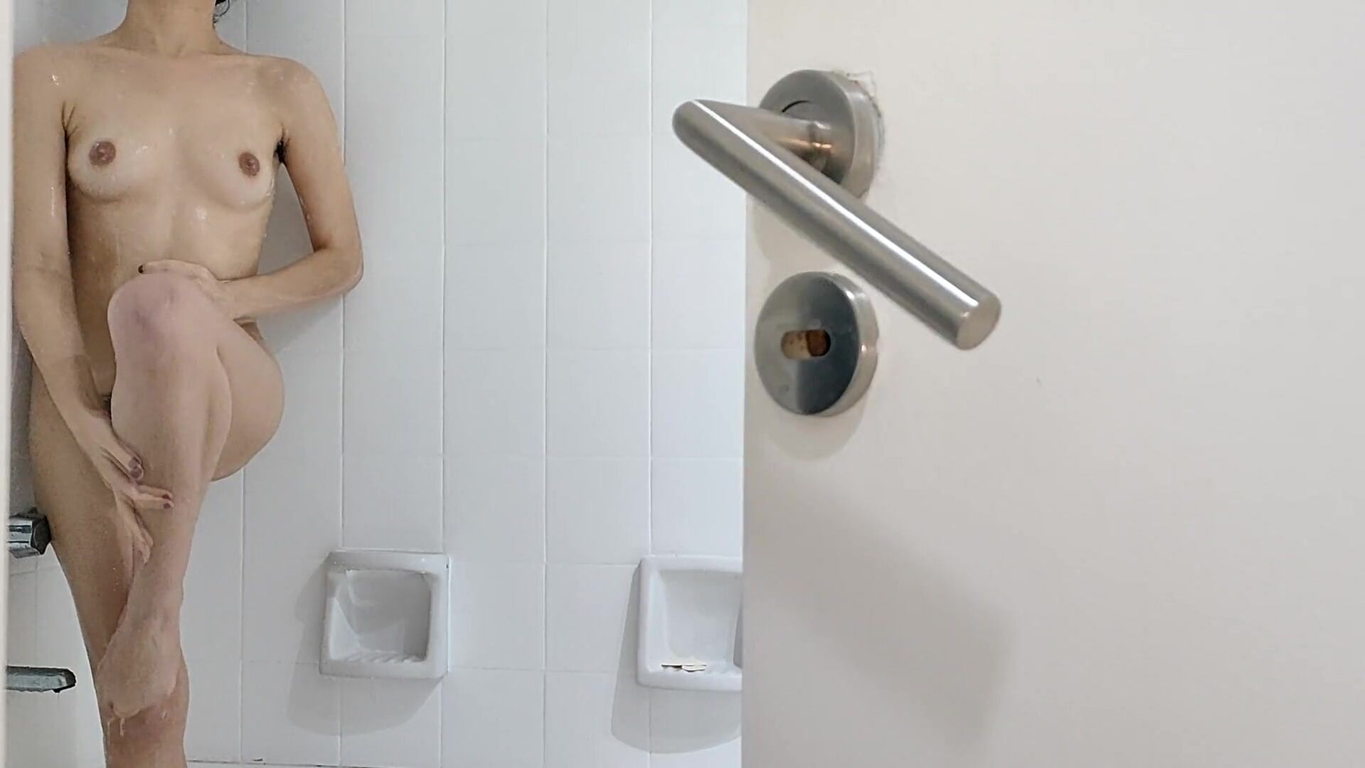 Spying my stepsister's friend masturbating in the bathroom