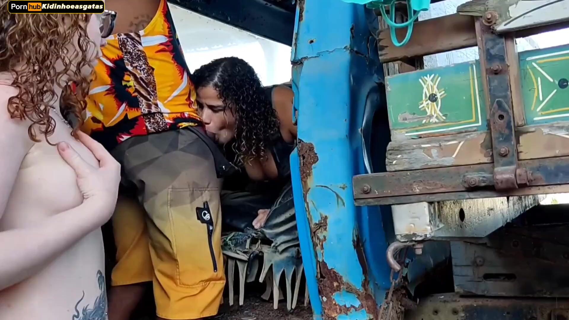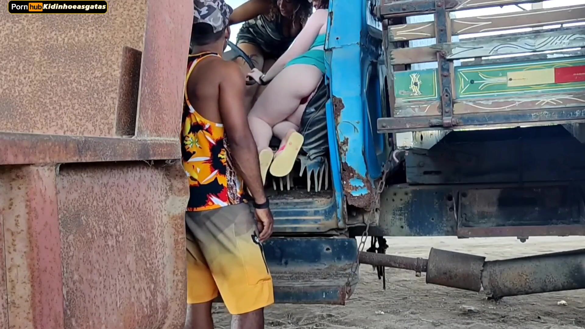 truck driver fucks two hot girls who are going to ask questions at their job
