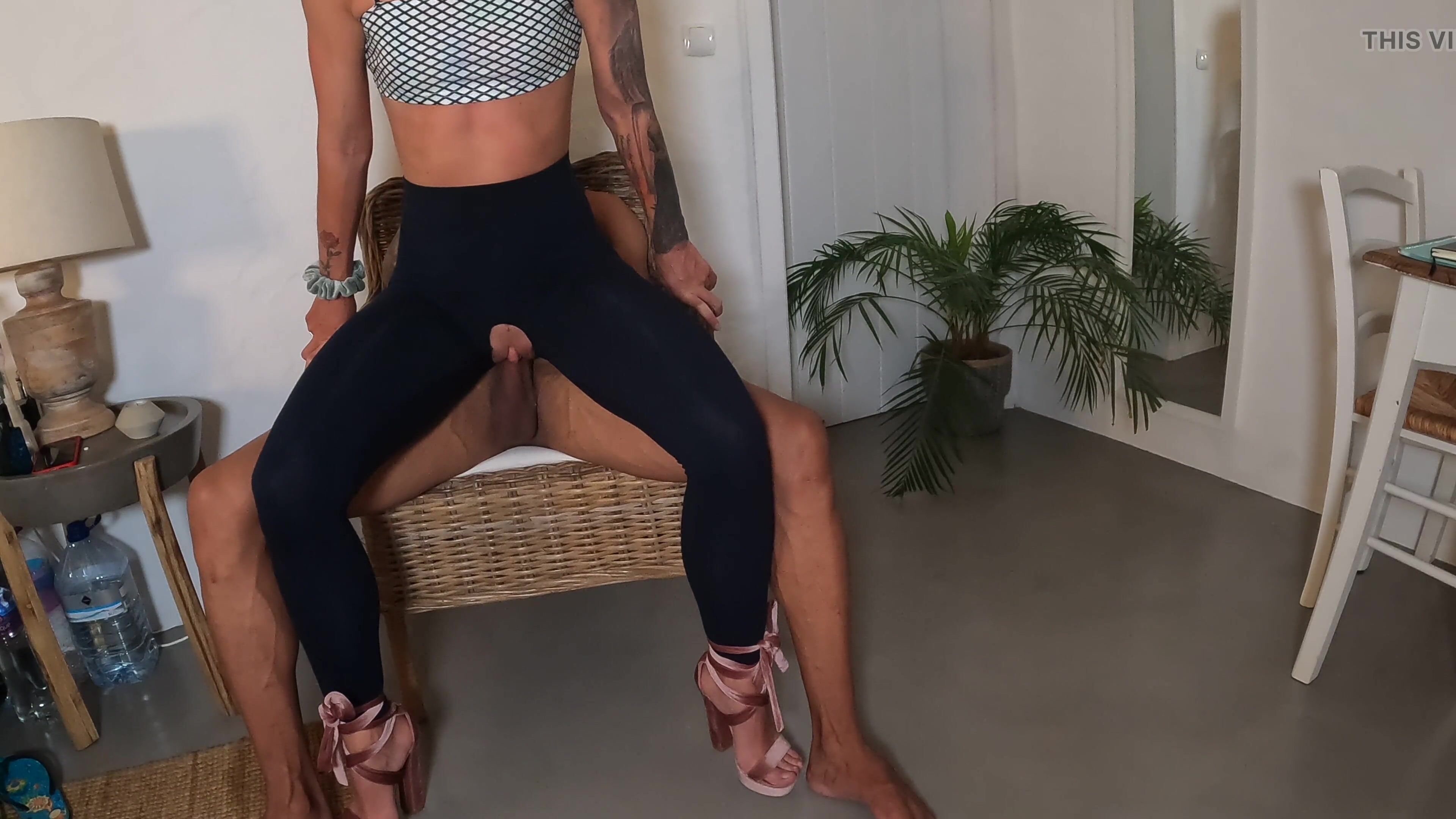 Sitting hot on the giant cock!