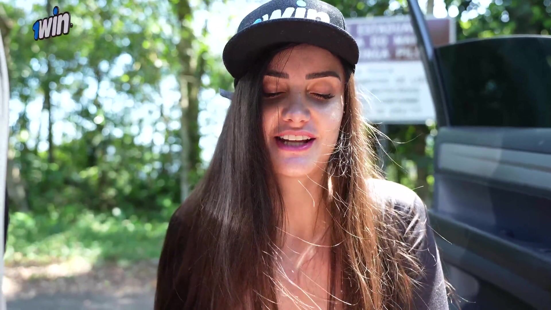 Busty brunette showing off and giving a blowjob on the avenue | Victoria RC | LP Produções