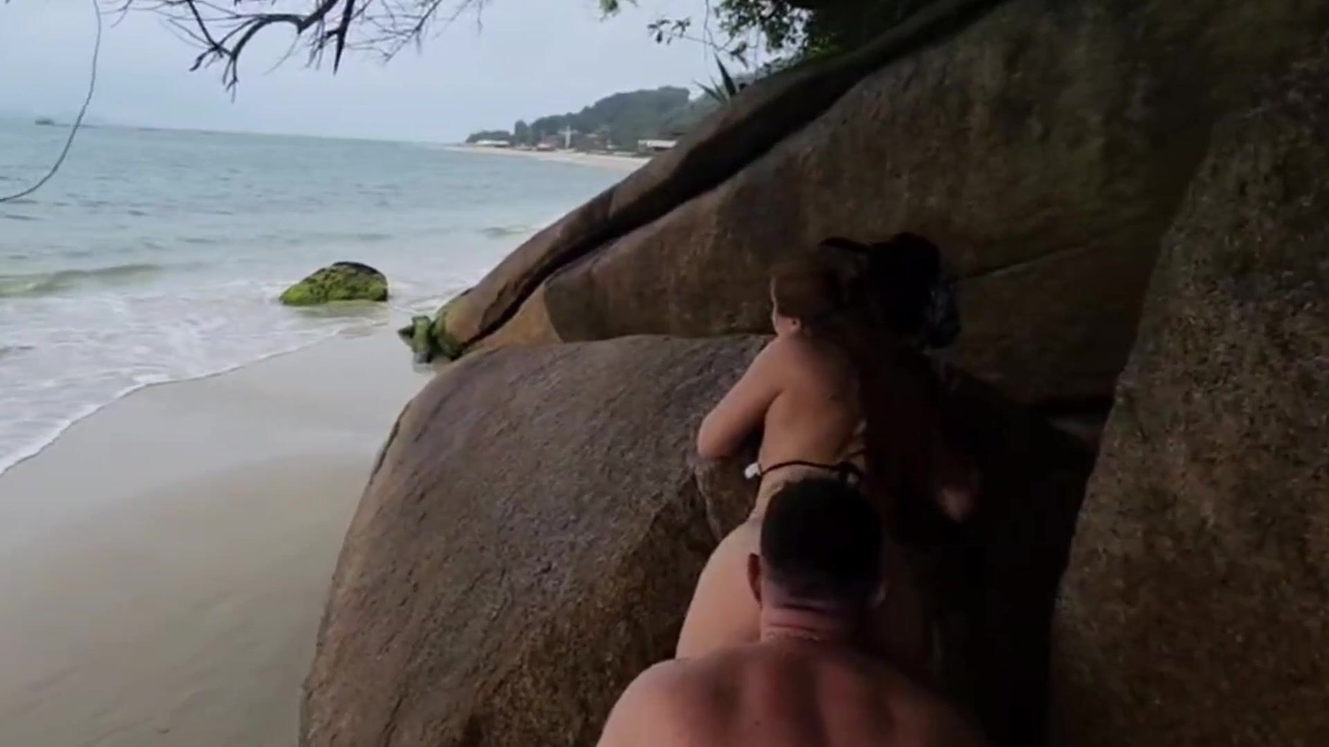 Levei a gostosa para a praia, começamos a nos pegar e no tesão fodemos ali mesmo