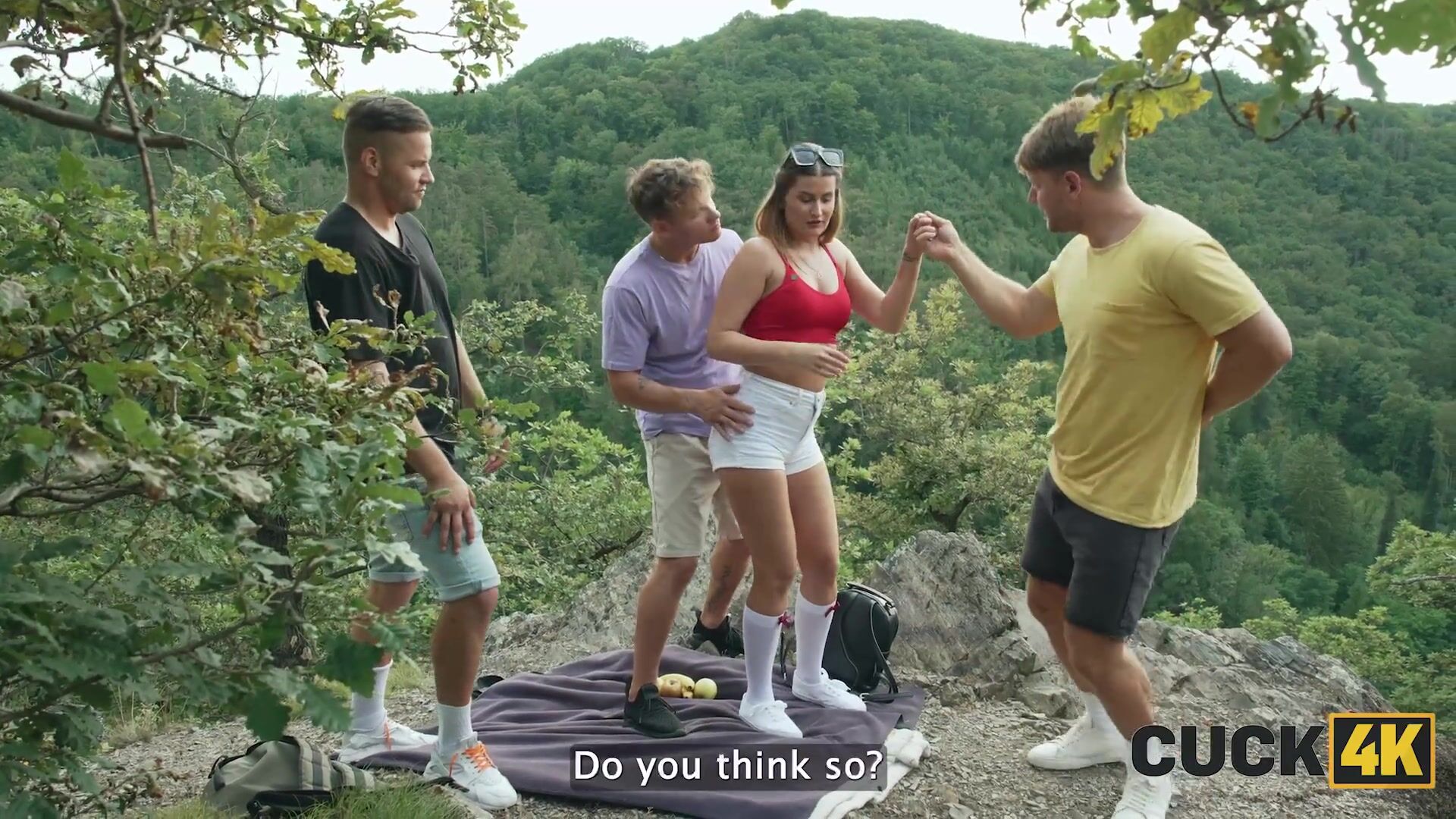 CUCK4K. Husband invited two guys with big dicks to fuck his wife in the forest