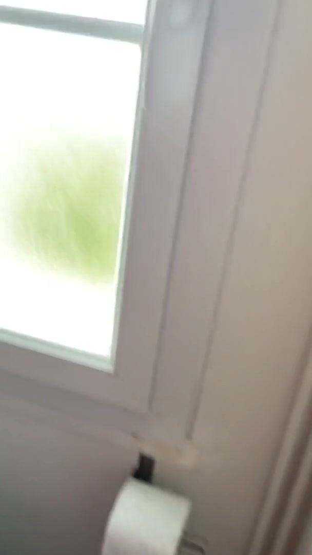 My French beurette pees and ends up jerking off my big cock to squirt on her tits