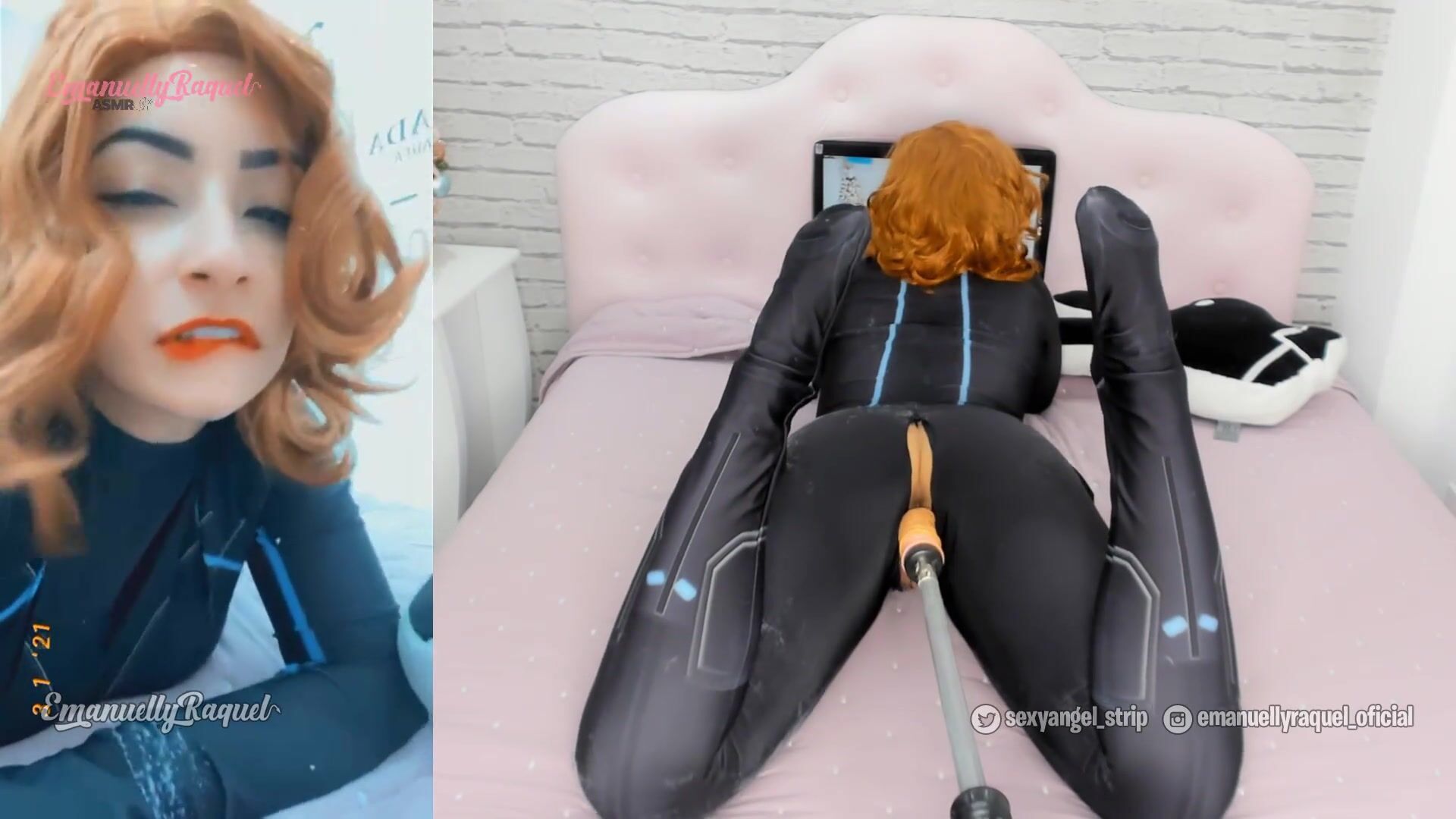 Black widow cosplay big butt girl sucking and fucking with her sex machine