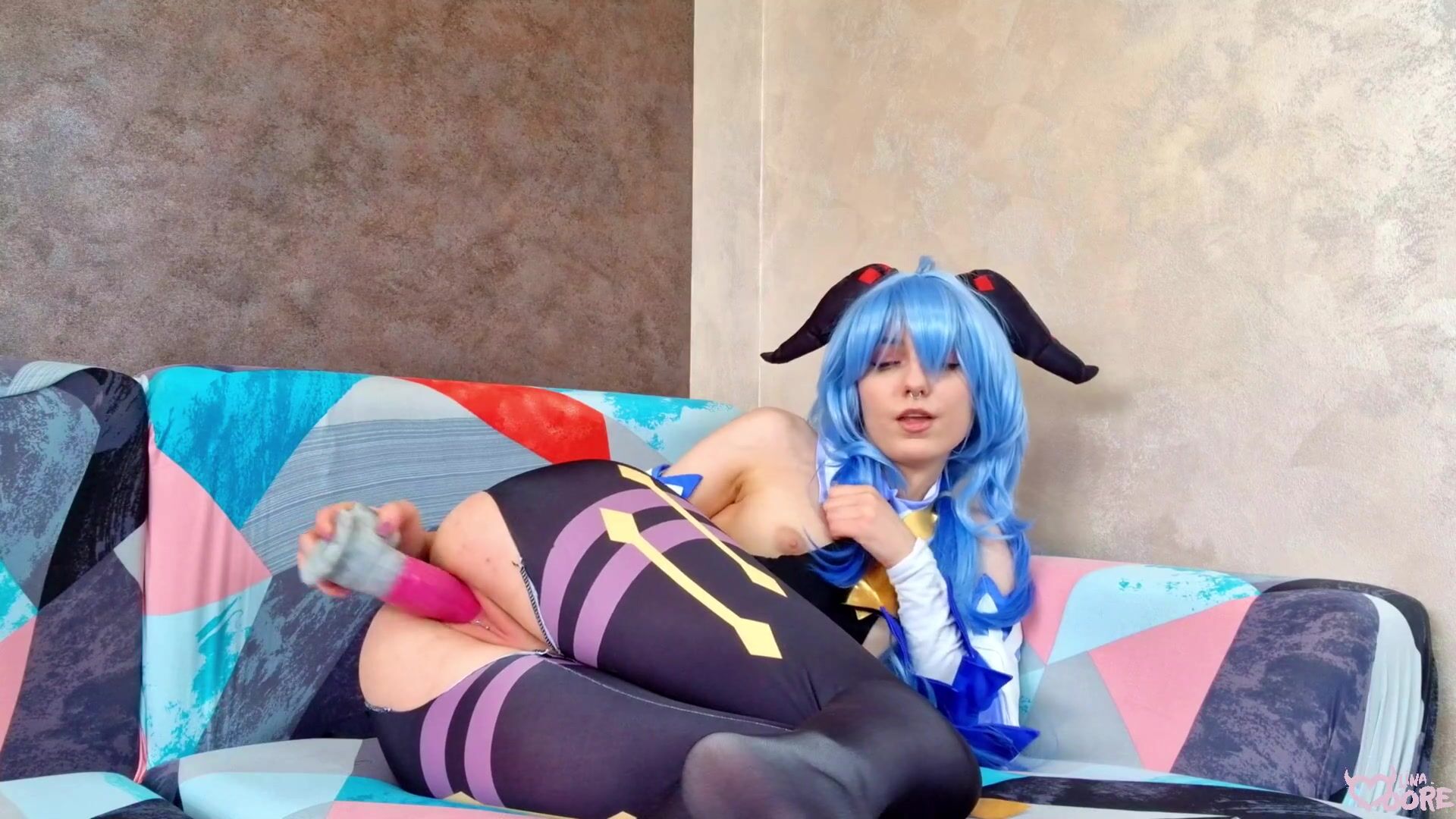 Genshin Impact Ganyu Fucking her pussy with dildo