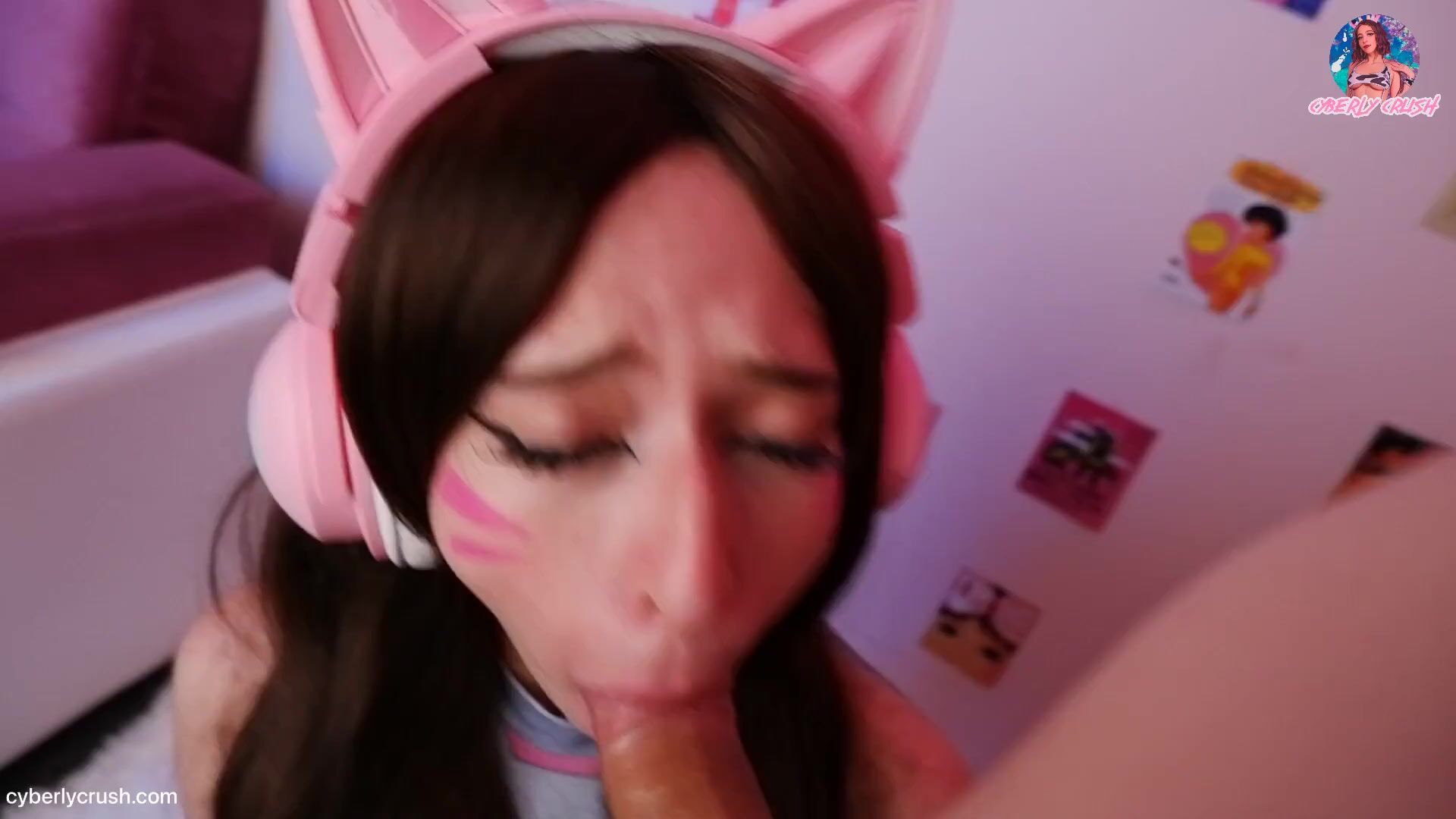 Dva Owerwatch Cosplay. Gamer Girl Ride Dildo & Sucking Cock While Playing