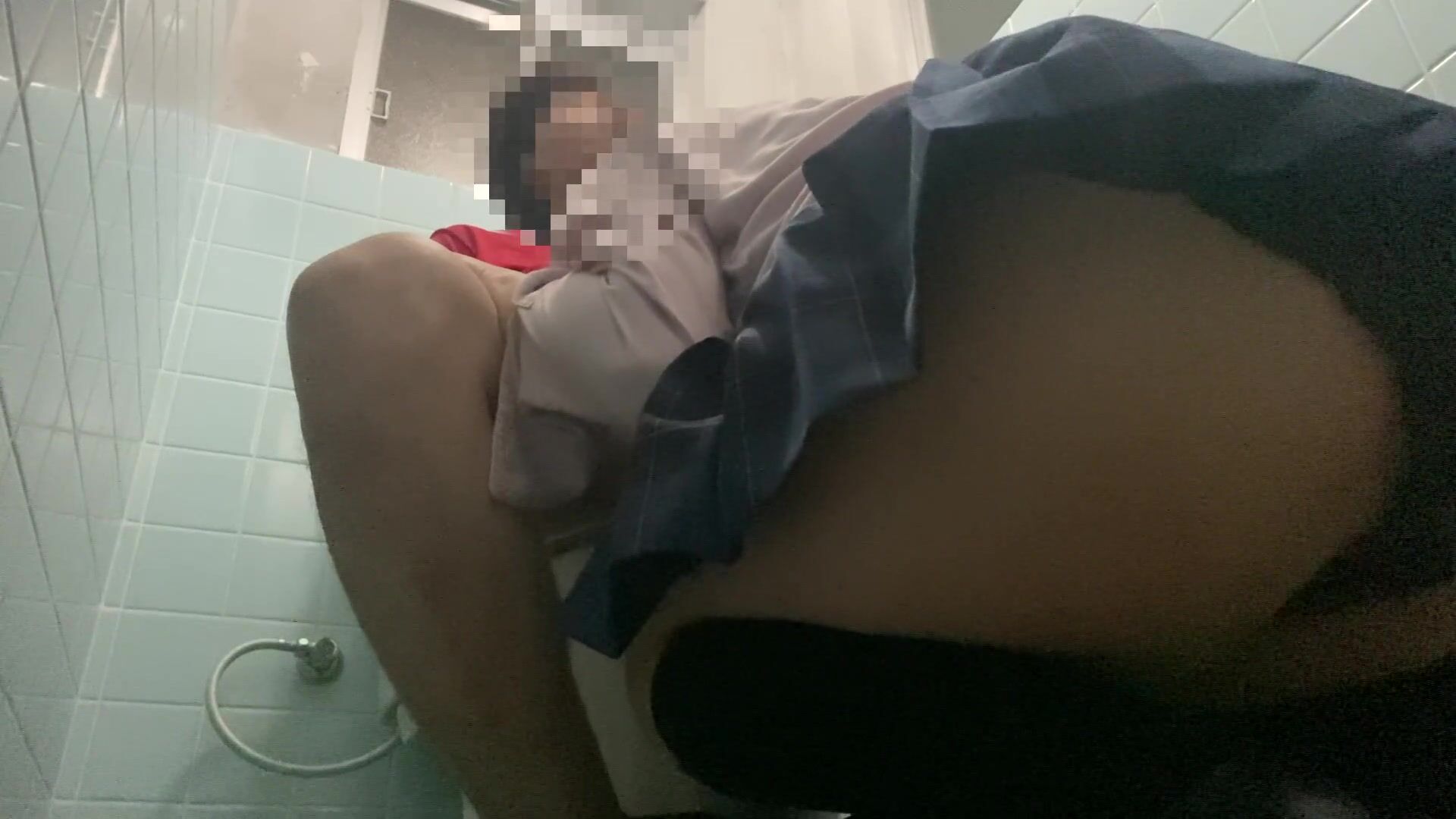 I made a beautiful girl in uniform clean the dick in the bathroom and put out a lot of sperm.