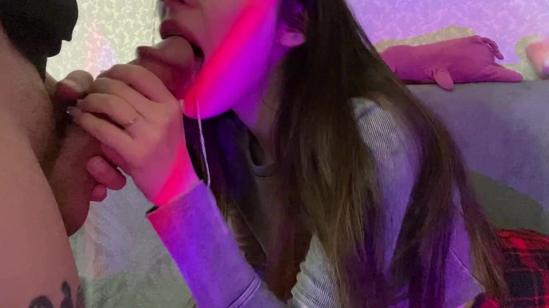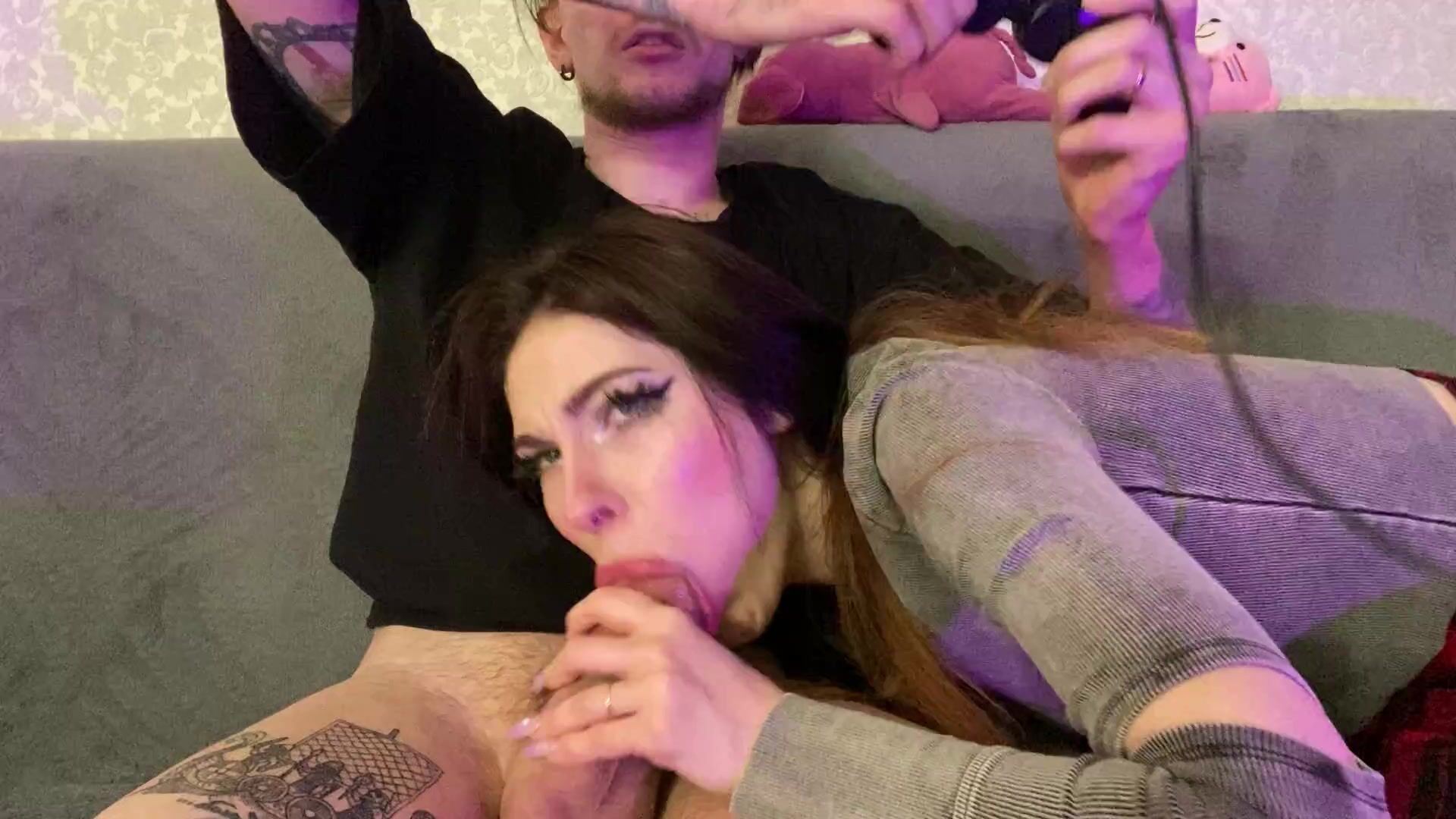 Beautiful Gamer Girl Sucking Big Cock and Get Cumshot On Her Face